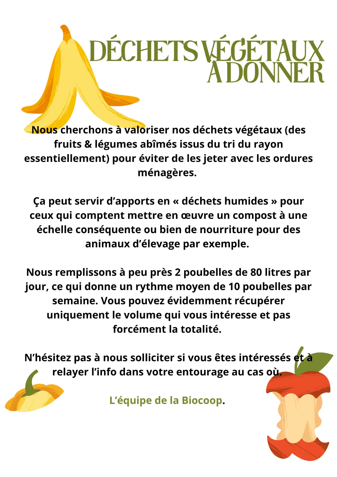 Nous avons un stock important de biodéchets à évacuer rapidement de notre magasin.